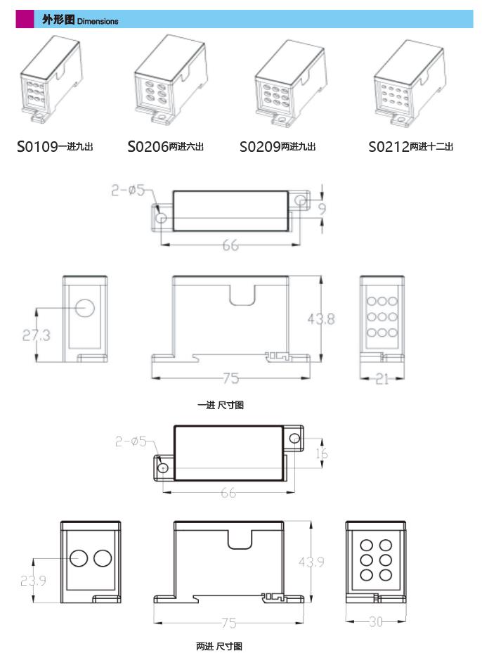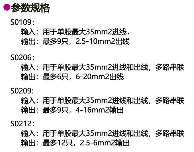 单极端子分线盒型号:S0109 S0206 S0209 S0212